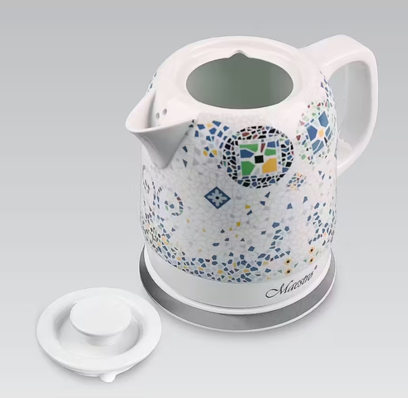 Maestro MR-068 elektriskā tējkanna ir kas vairāk nekā tikai ierīce ūdens uzvārīšanai. Tas ir spilgts un stilīgs virtuves akcents, kura keramikas korpuss ir rotāts ar izsmalcinātu, krāsainu mozaīkas rakstu. Šī tējkanna kļūs ne tikai par uzticamu palīgu, bet arī par oriģinālu interjera detaļu, kas piešķirs Jūsu virtuvei dzīvīgumu un raksturu.