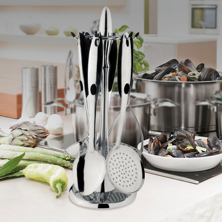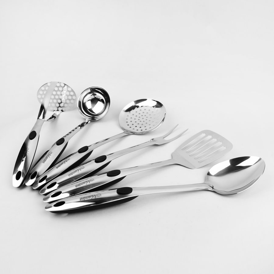 - Visi komplekta elementi ir izgatavoti no augstas kvalitātes nerūsējošā tērauda, kas ir izturīgs, higiēnisks, videi draudzīgs un izturīgs. Metāls ir izturīgs pret koroziju.
