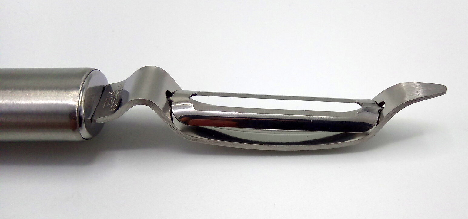Lieliski piemērots kartupeļu, burkānu, gurķu, kabaču, ābolu un bumbieru mizošanai. Asais gals (ja ir konstrukcijā) palīdz izņemt kartupeļu “actiņas”.
