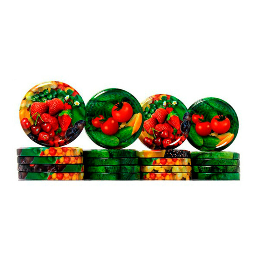 - Dizains: Vāciņi rotāti ar krāsainiem zīmējumiem (augļu, dārzeņu vai ogu motīviem), kas piešķirs jūsu burkām estētisku izskatu plauktā.