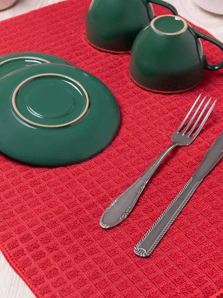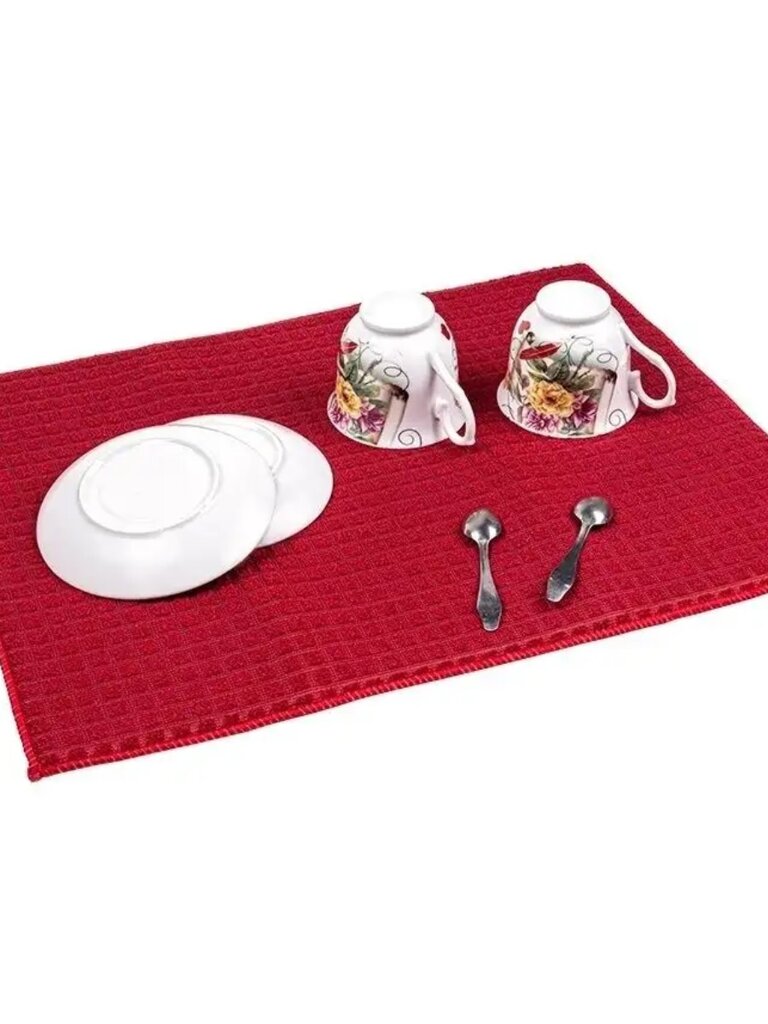 Izklājiet paklājiņu blakus izlietnei un lieciet uz tā nomazgātus katlus, pannas, glāzes vai galda piederumus. Tāpat lieliski piemērots lietošanai zem trauku žāvētāja, lai savāktu piles, vai kā aizsargs trausliem traukiem (piemēram, kristālam).