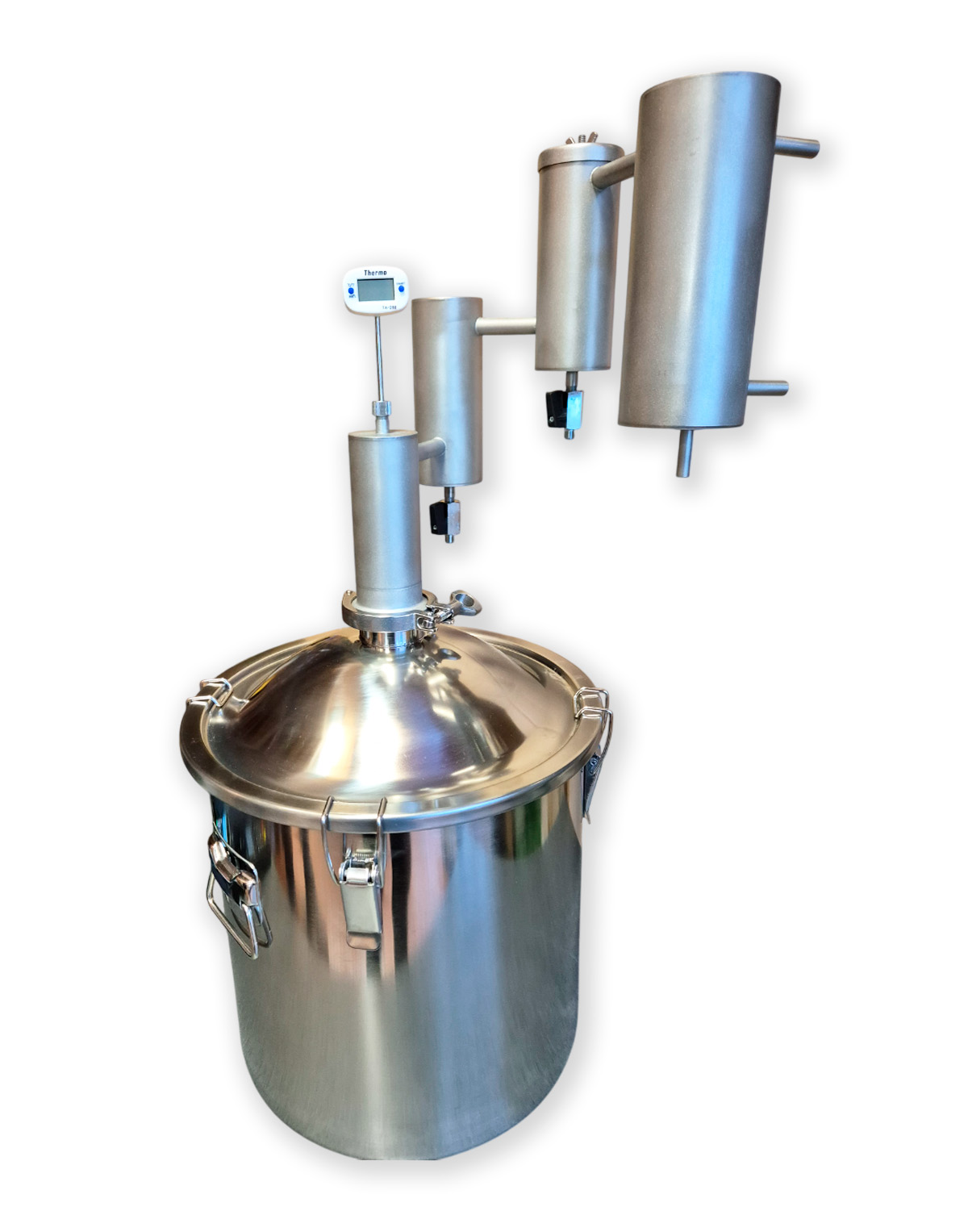 • Neatkarīgas modifikācijas iespēja – 2” skavas savienojums ļauj destilēšanai izmantot citus komponentus. Piemēram – uzstādīt papildus cargu, dioptru vai kupolu-alambiku;
