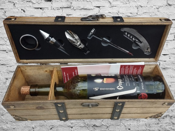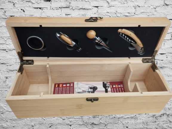 - Biznesa dāvanām: Izcila kastīte ar vīna pudeli un aksesuāriem – lielisks dāvana biznesa partneriem vai kolēģiem.
