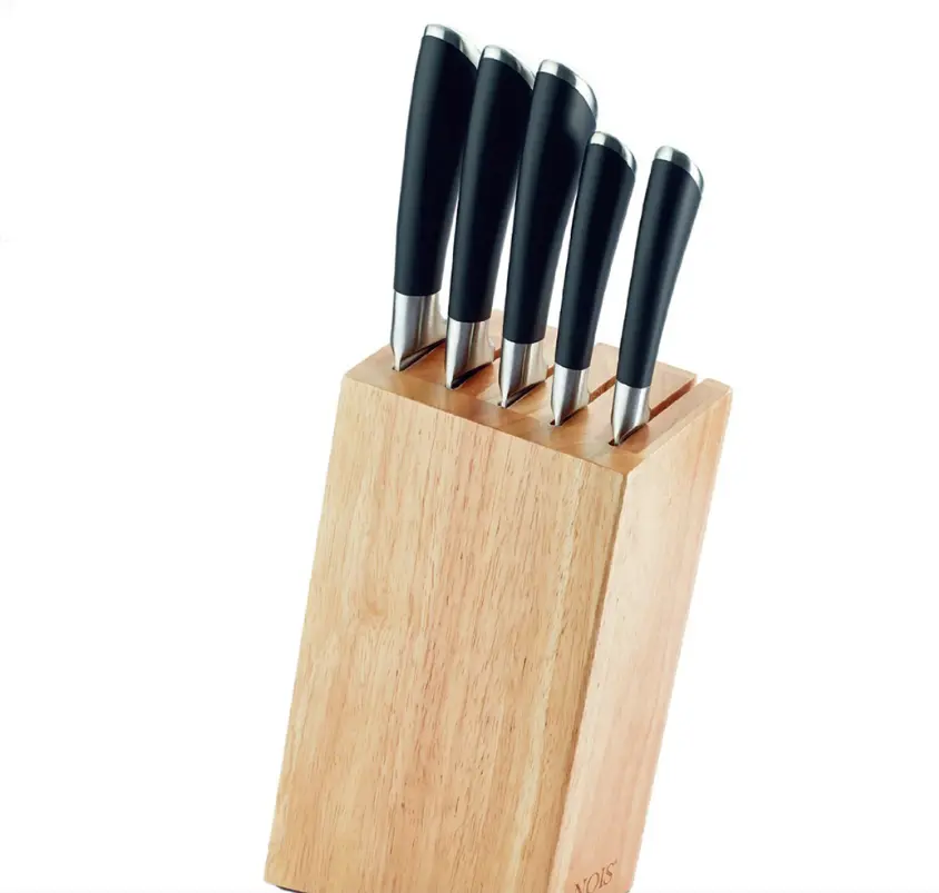 Komplekts ir nokomplektēts tā, lai ar vienu pirkumu jūs varētu segt visas virtuves vajadzības. Pieci specializēti naži ļauj viegli tikt galā ar jebkuru produktu – no kraukšķīgas maizes garozas līdz smalkai garšaugu kapāšanai, un statīvs uztur ideālu kārtību uz darba virsmas.