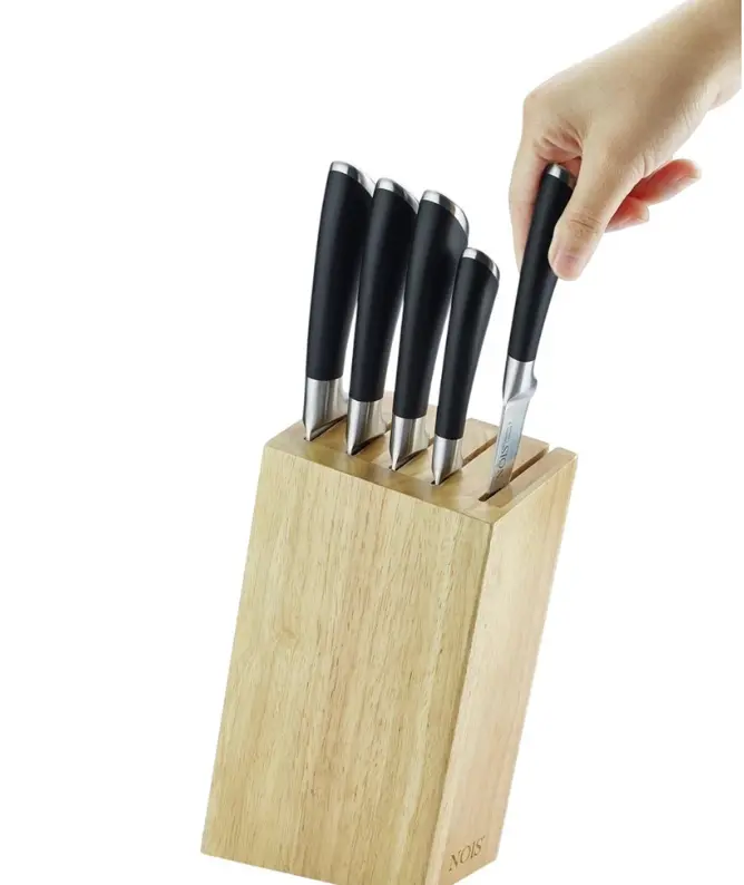 - ✅ Droša glabāšana: Vertikālais statīva dizains neļauj nažiem berzēties vienam pret otru, tāpēc tie ilgāk saglabā asumu.