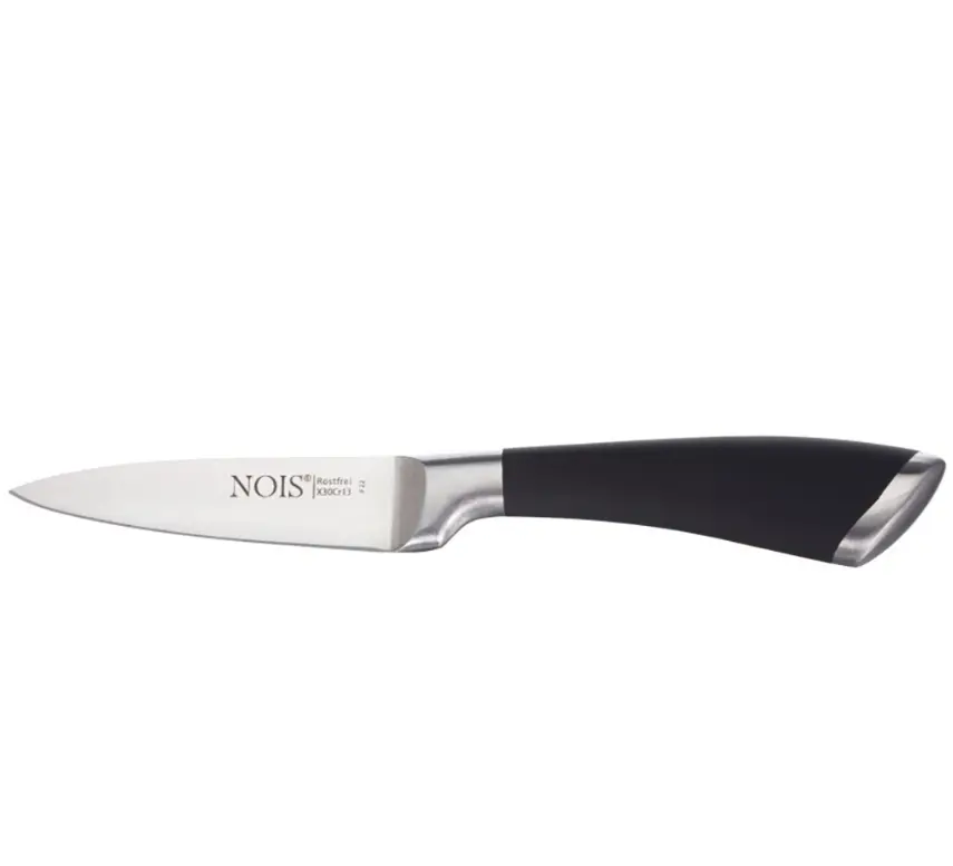 - Dārzeņu nazis (9 cm / 3,5″) – precīzs instruments mizošanai un smalkiem griezumiem.