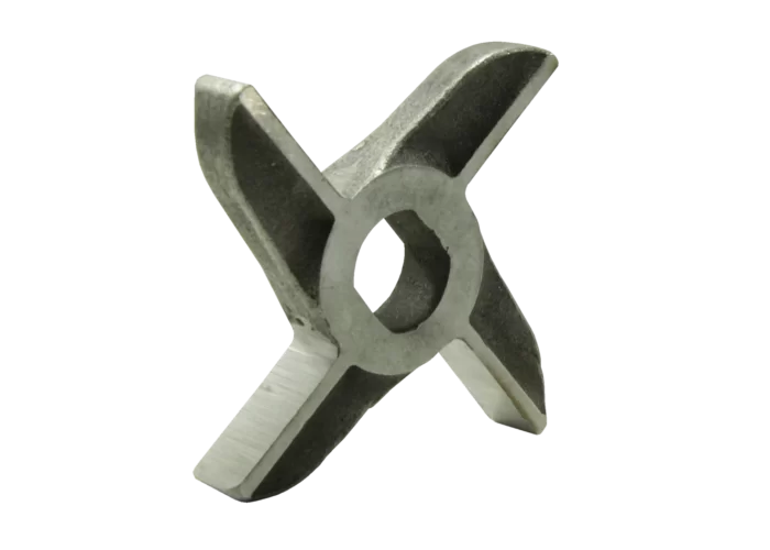 - Izturīgs metāla sakausējums iztur rūpnieciskas slodzes, maļot lielus gaļas apjomus.