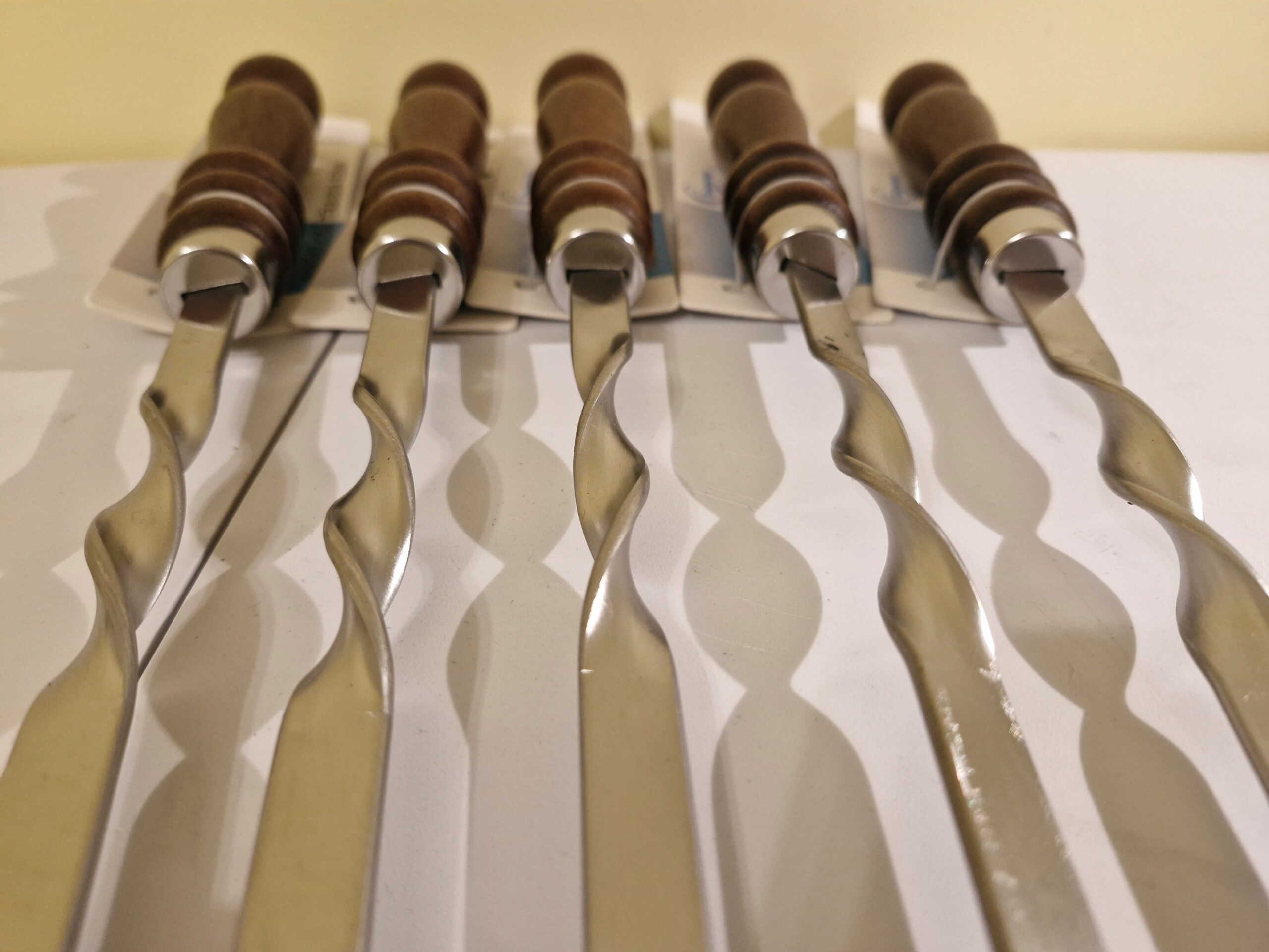 Šis 5 iesmu komplekts ir neaizstājams rīks katram grila meistaram. Izgatavotas no augstas kvalitātes pārtikas nerūsējošā tērauda, iesmiem ir izcila izturība – tie neliecas pat zem liela gaļas svara. 12 mm platums un plakana forma neļauj ēdienam griezties ap savu asi, tāpēc katrs gabaliņš izcepas vienmērīgi no visām pusēm.