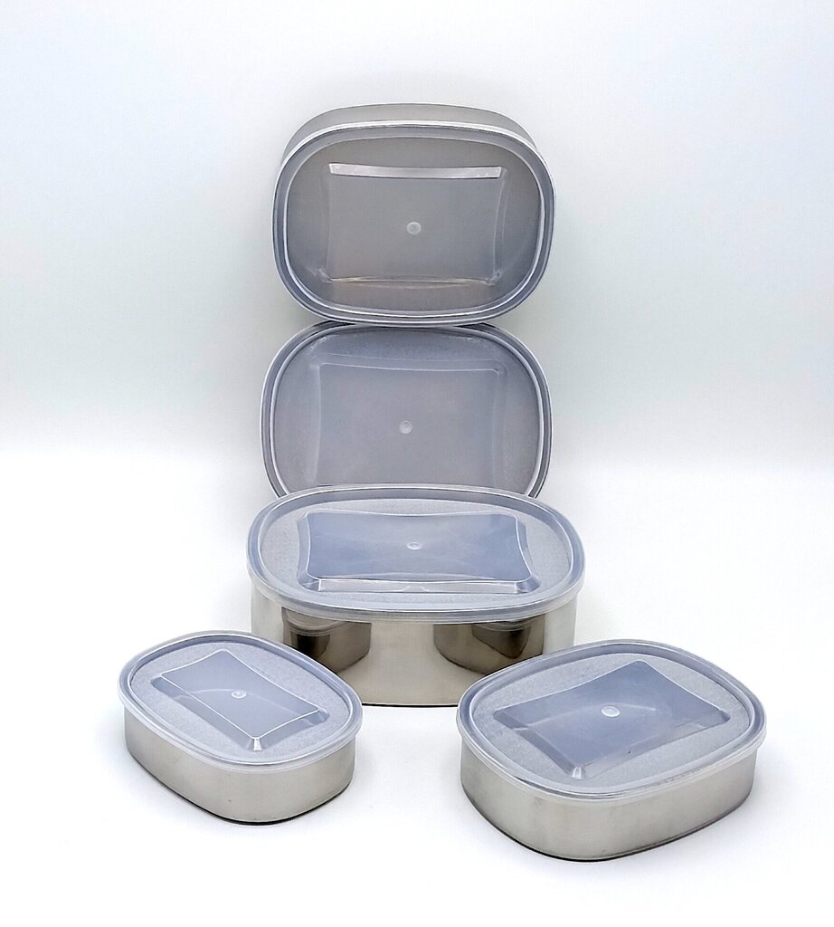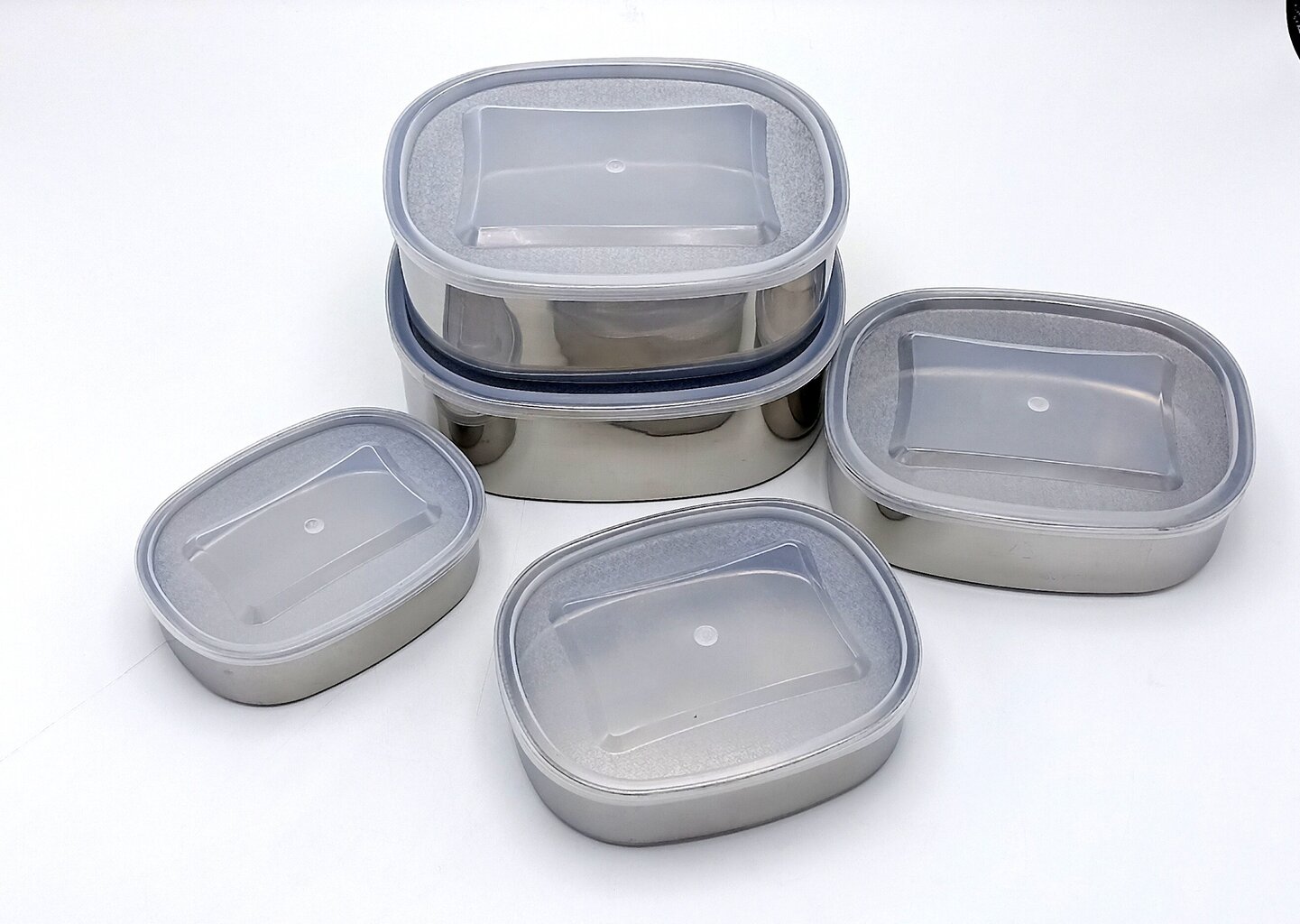 Šis 5 gabalu nerūsējošā tērauda trauku komplekts ir lielisks risinājums tiem, kas meklē ilgmūžīgus un veselībai drošus pārtikas uzglabāšanas traukus. Atšķirībā no plastmasas traukiem, nerūsējošais tērauds neuzsūc ēdiena smakas, taukus vai krāsas (piemēram, no bietēm vai karija), tāpēc trauki vienmēr saglabājas tīri un higiēniski.