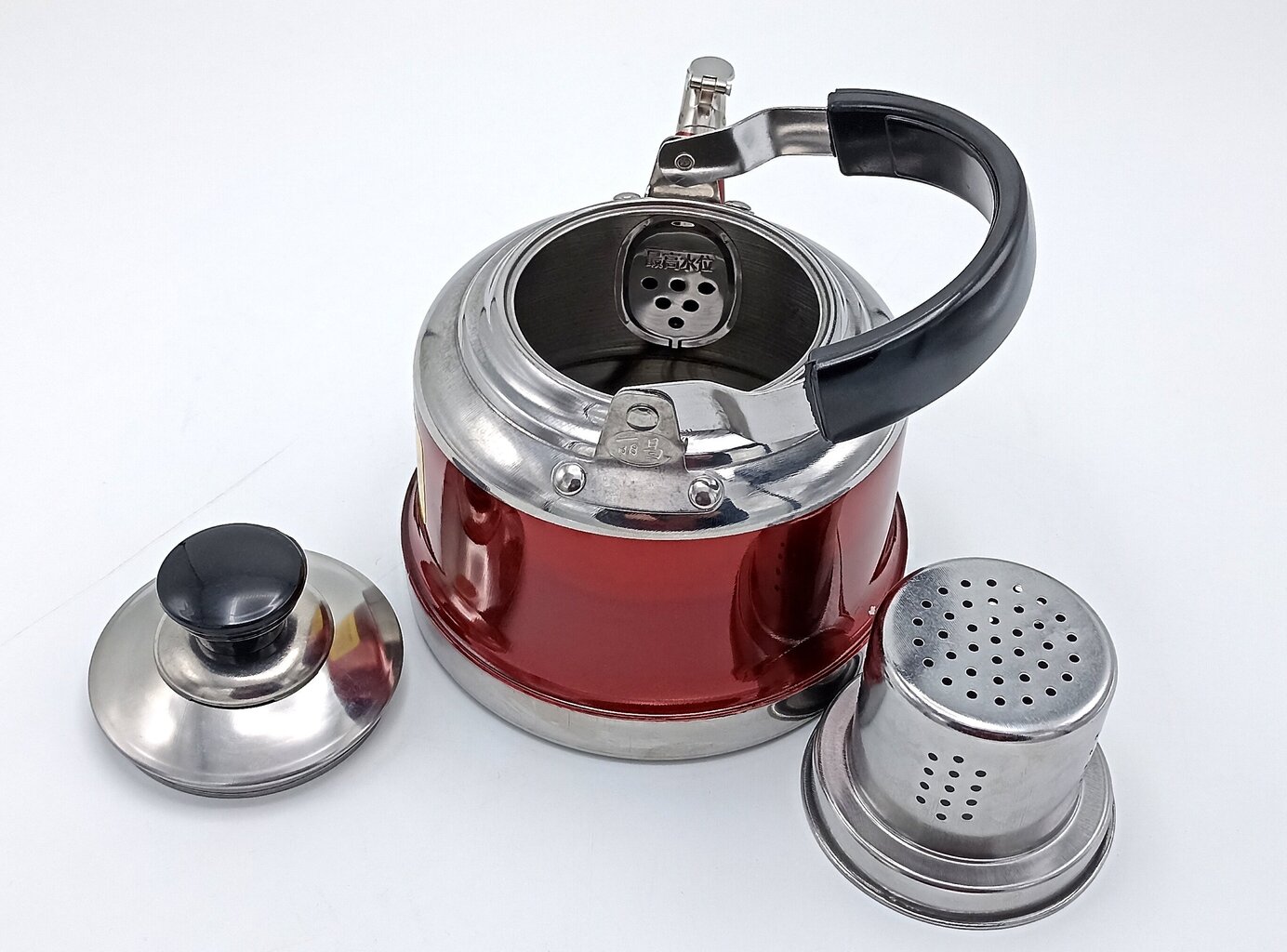 - Papildu filtrs: Pie kakliņa, zem vāka, piestiprināts īpašs filtra siets, kas aiztur kaļķakmens nogulsnes vai tējas lapas (ja tējkanna tiek izmantota tējas vārīšanai).
