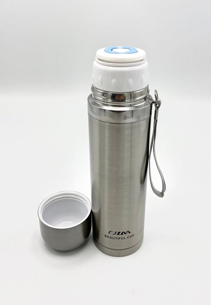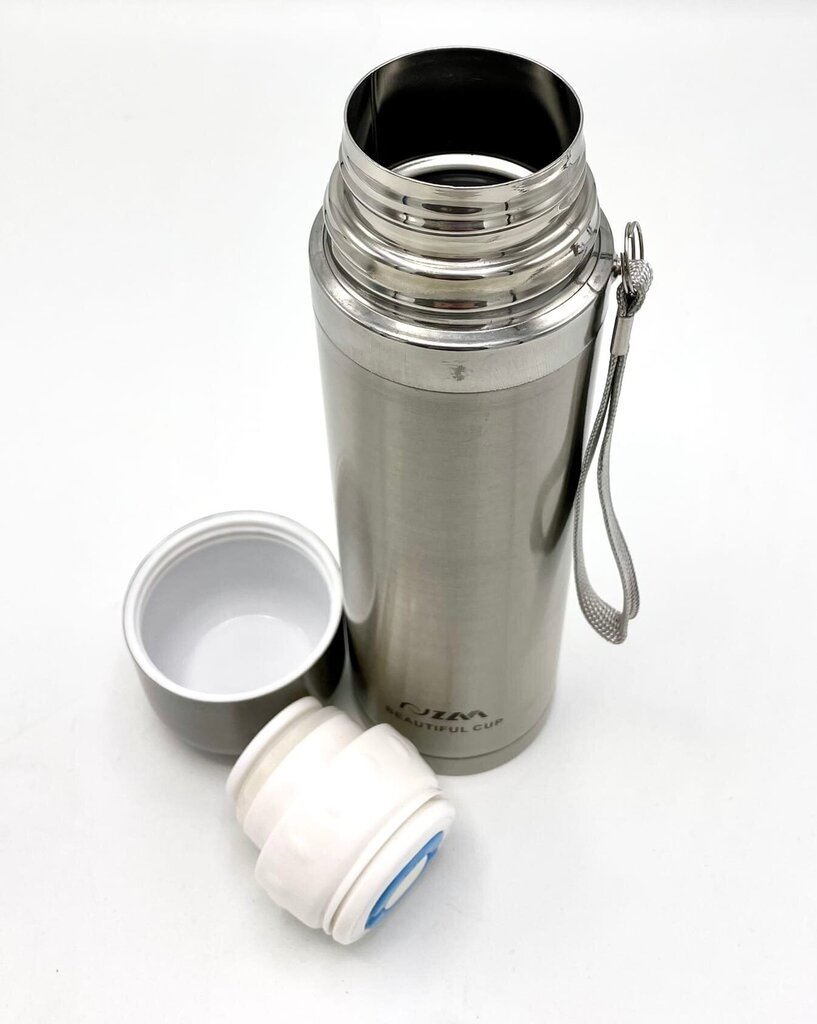 - Ērta transportēšana: Termosam ir piestiprināta siksniņa, tāpēc to ērti nest rokā vai pakārt.
