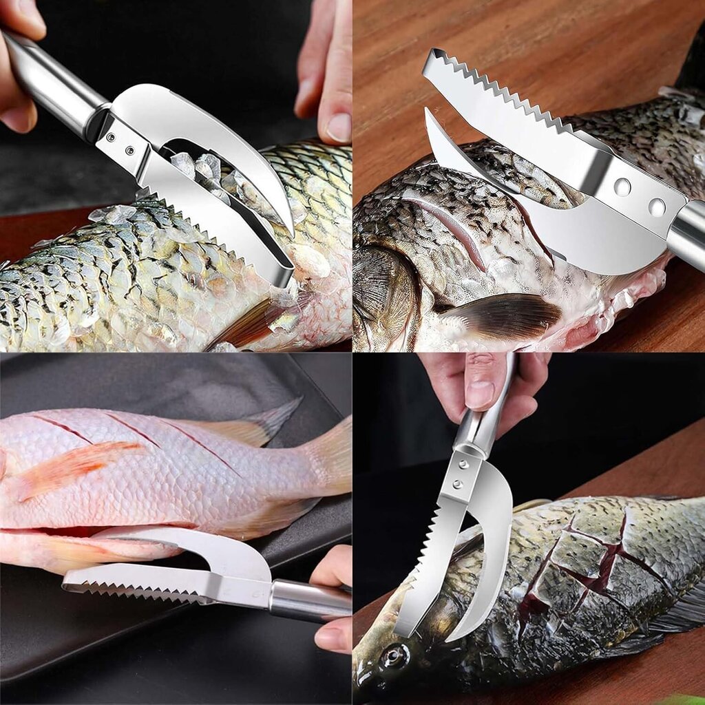 „FishScraper“ ir daudzfunkcionāls virtuves rīks, kas izstrādāts, lai atvieglotu un paātrinātu zivju apstrādes procesu. Aizmirstiet par vairāku dažādu nažu izmantošanu – šī ierīce apvieno visu nepieciešamo ideālai zivju pagatavošanai vienā kompaktā rīkā.