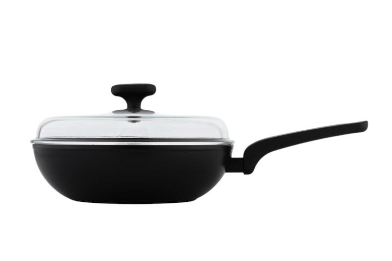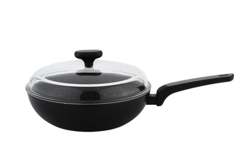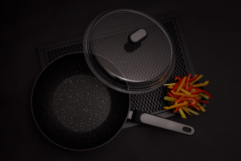 ✅ Kalts alumīnija korpuss: Vieglāks par čuguna vai lieta alumīnija pannām, tāpēc vok panna ir ērti lietojama ar vienu roku.