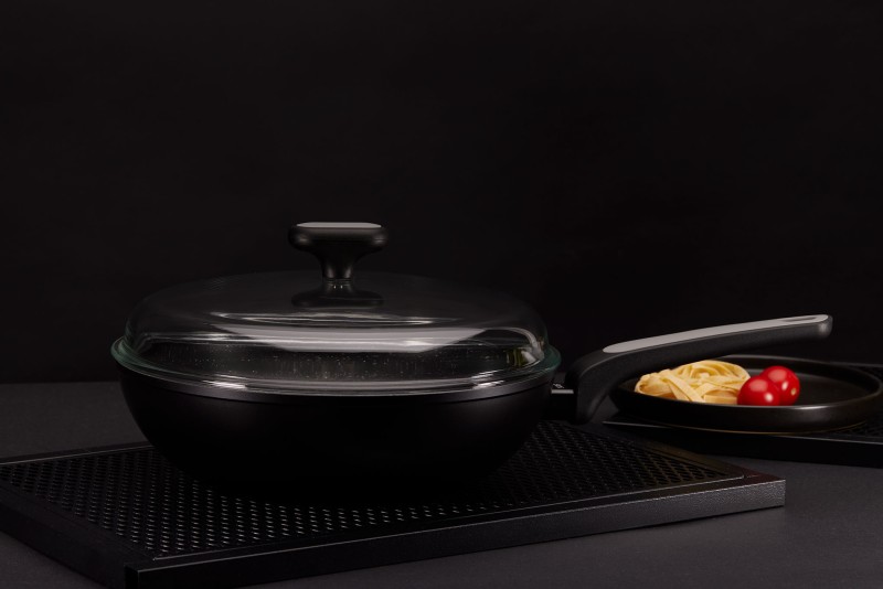 ✅ Borosilikāta stikla vāks: Izturīgs pret temperatūras svārstībām, tā izliektā forma ļauj tvaikam cirkulēt un mitrināt gatavojamo ēdienu.