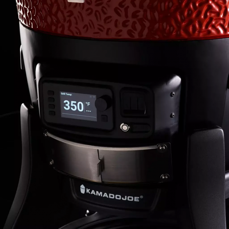 Piedzīvojiet jaunu grilēšanas ēru ar Kamado Joe. Ar “Konnected Joe” ir ārkārtīgi vienkārši iekurināt ogles – vienkārši nospiediet automātiskās aizdedzes (AFS) pogu, iestatiet vēlamo cepšanas temperatūru ar digitālo pogu Kontrol Board™ vai Kamado Joe lietotni un ļaujiet Kontrol Fan™ paveikt visu pārējo.