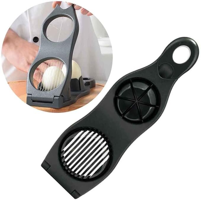 - Asi griešanas elementi: Plānas, bet izturīgas metāla stieples viegli pārgriež olu, to nesaspiežot, nodrošinot estētisku izskatu.