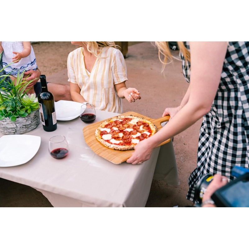 Viegli izņemiet picas, izmantojot vieglo, izturīgo Ooni bambusa lāpstu. Dēlītim ir gluda un ūdensizturīga virsma, lai picas mīkla nepieliptu, dēli var izmantot arī pasniegšanai.
