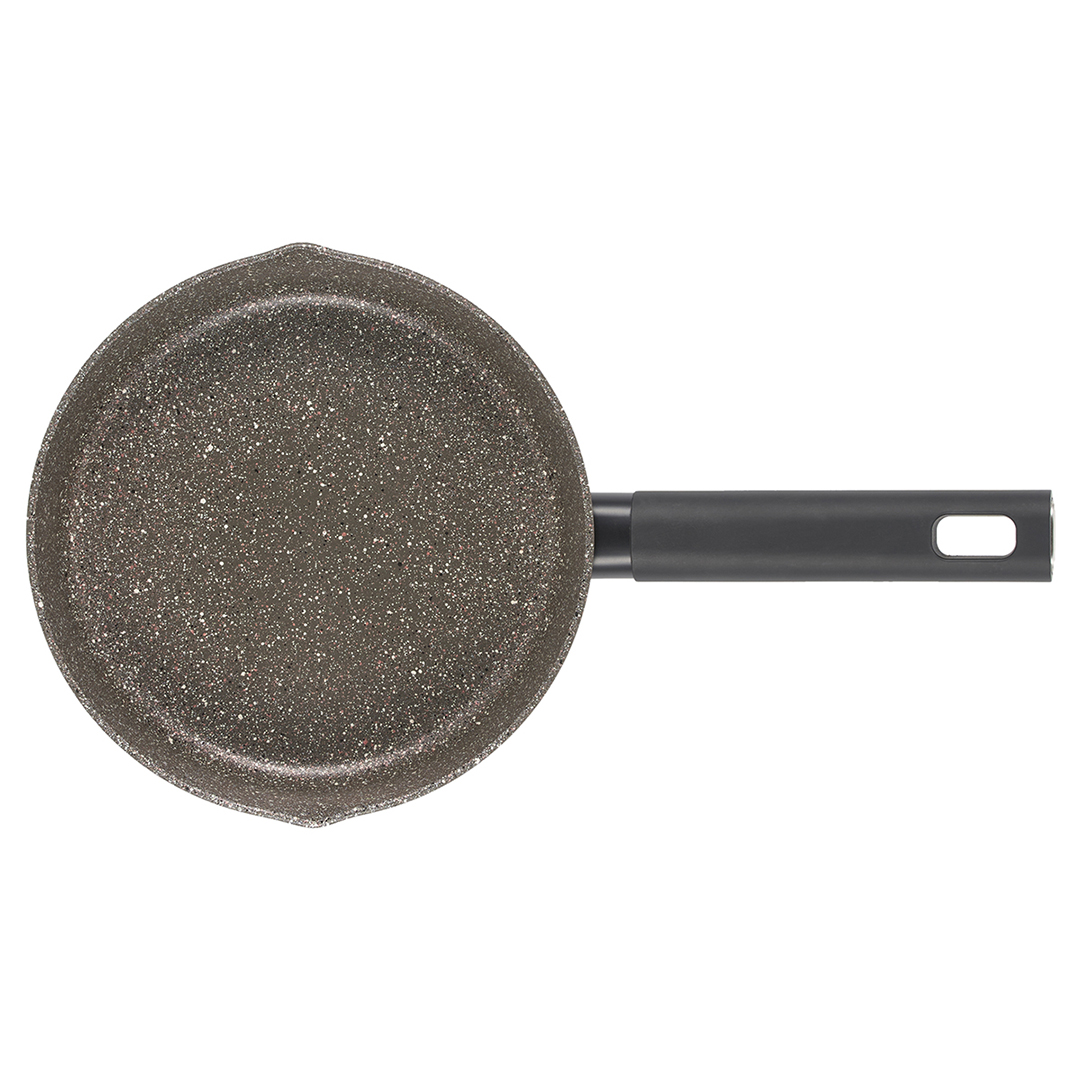 • Bakelīta rokturis ar Soft Touch pārklājumu, kas nenoslīd rokā un nepārkarsējot, lietojot pannu uz plīts, tas palielina drošību