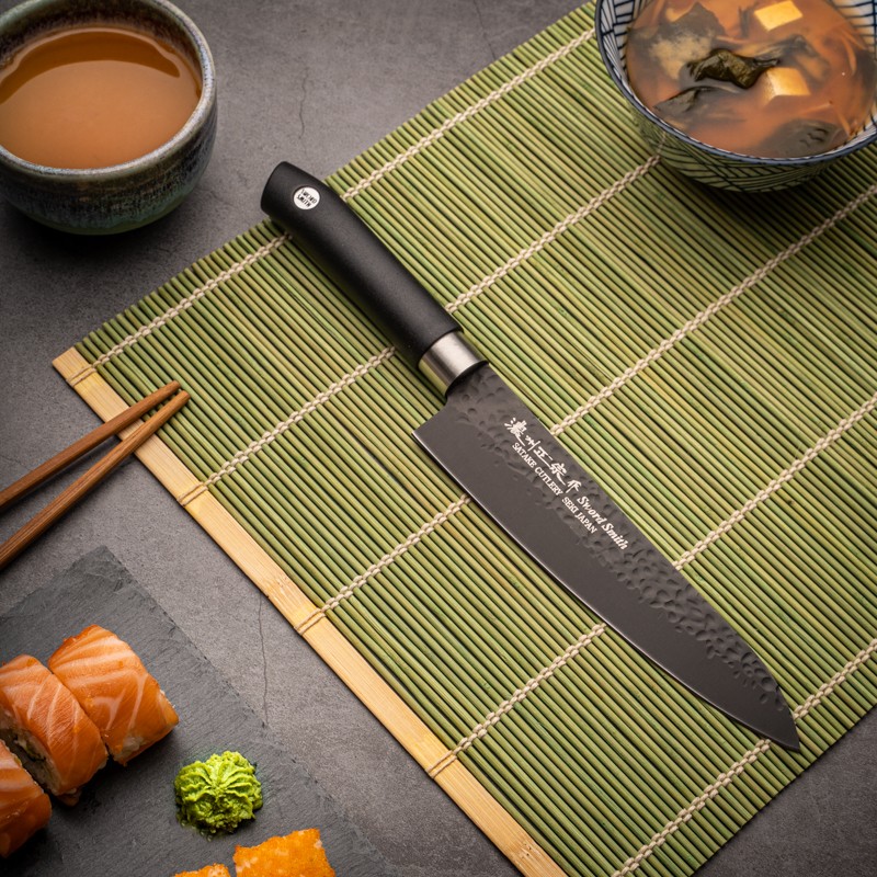 “”Satake Sword Smith Titanium”” ir pagaminti japāniskie stila naži ar neierastu, tev stīma segumu šim stilam. Lieliska griešanas spējas, acīm traucoša izskats – šie naži nepaliek vienaldzīgus.