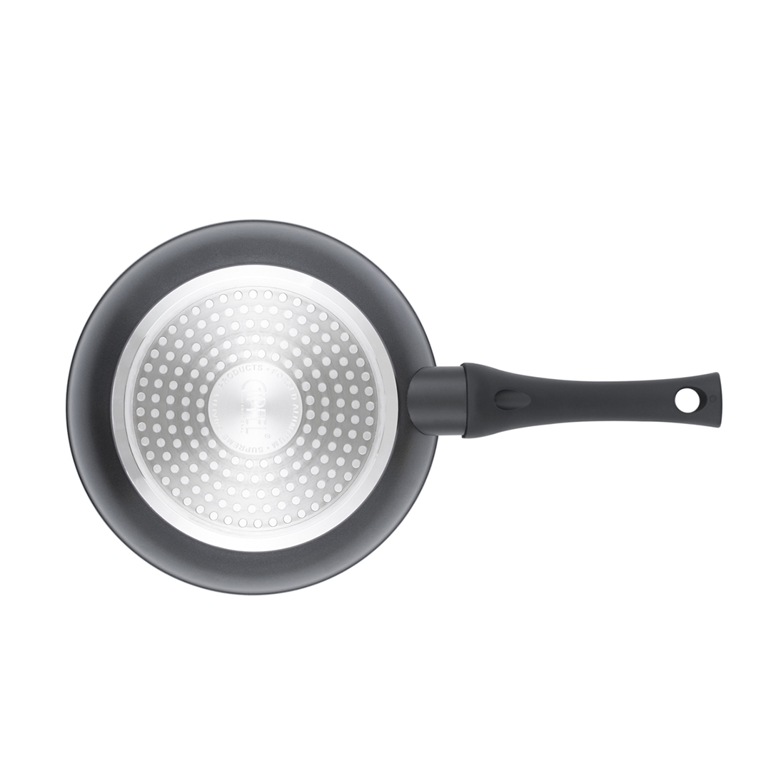 • Bakelīta rokturis ar Soft Touch pārklājumu, kas nenoslīd rokās un neuzkarst, izmantojot pannu uz plīts, kas palielina drošību
