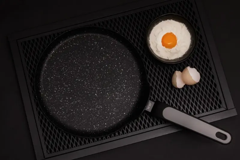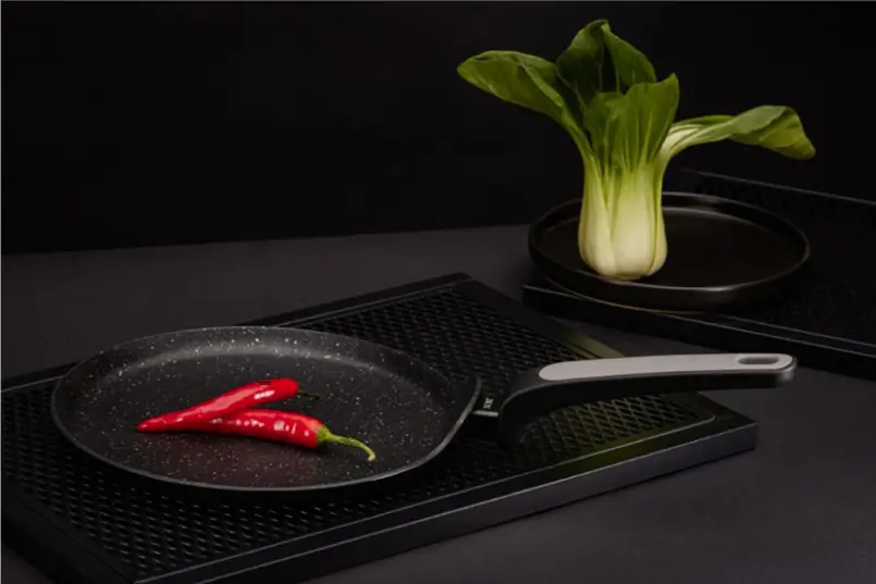 ✅ Stabilitāte: Panna ir izturīga pret deformācijām, tāpēc pamatne paliek plakana pat bieži lietojot uz augstas karstuma.