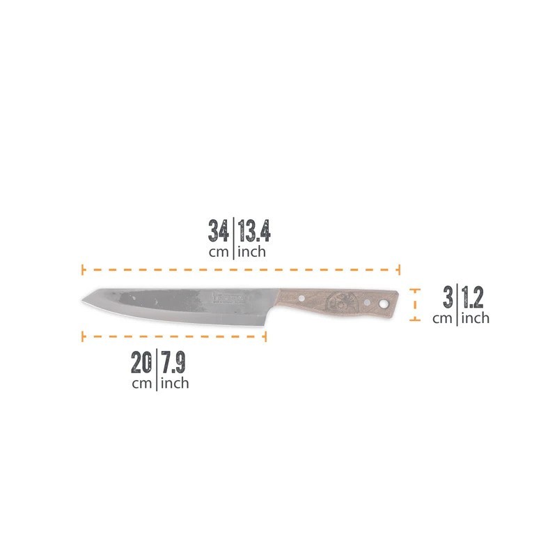 Petromax 20 cm virtuves nazis ir augstas kvalitātes, ar rokām darināts instruments, kas ražots Zolingene (Solingen), Vācijā. Šis nazis ir radīts ērtai un efektīvai griešanai, izmantojot augstākās kvalitātes materiālus un ražošanas tehnoloģijas.