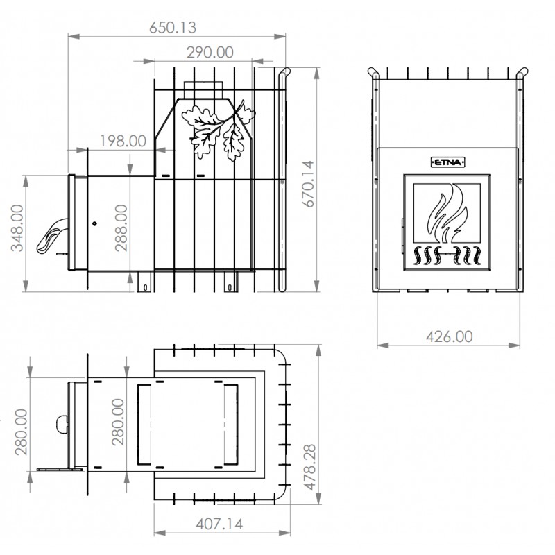 Krāsns „Etna12-S” ir paredzēta nelielām pirtīm (līdz 12 $m^3$), kuras vēlas kurināt no blakus telpas. Tas palīdz uzturēt tīrību pašā tvaika telpā, un stikla durvis atpūtas telpai rada kamīna efektu. Pagarintā kurtuve ļauj viegli uzstādīt krāsni caur sienu, glīti nosegt uzstādīšanas atveri.