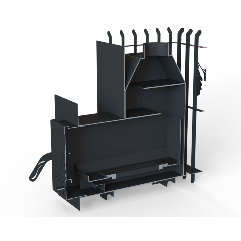 Tas ir pārdomāts risinājums, kas ļauj samazināt transportēšanas izmaksas un atvieglo krāsns ienešanu telpā caur šaurām durvīm. Salikšana ir vienkārša un neprasa īpašus instrumentus.