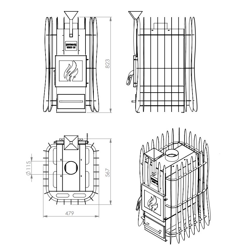 - Nē, šim modelim ir īsa kurtuve, tāpēc tas ir paredzēts kurināšanai tieši no pirts telpas.