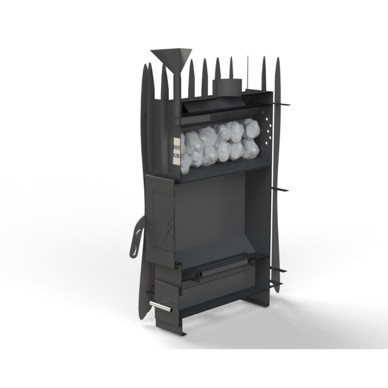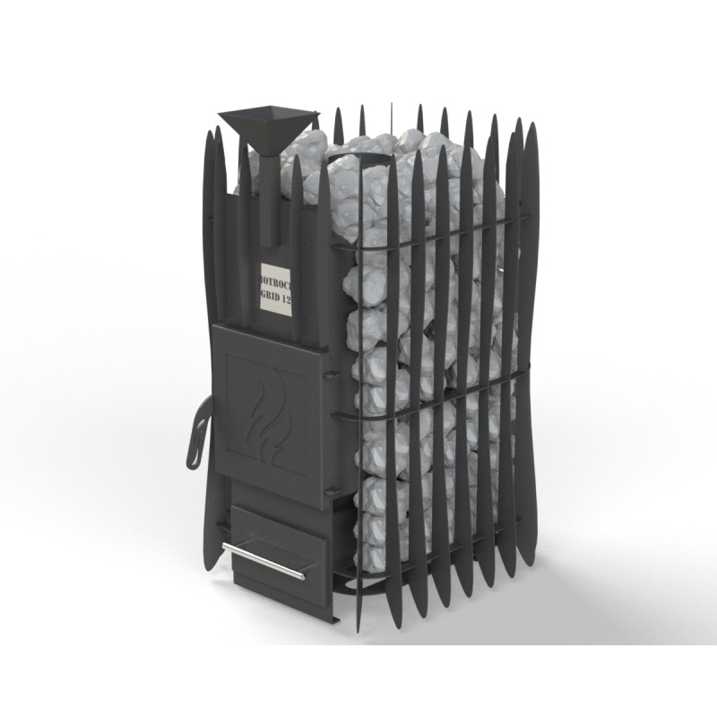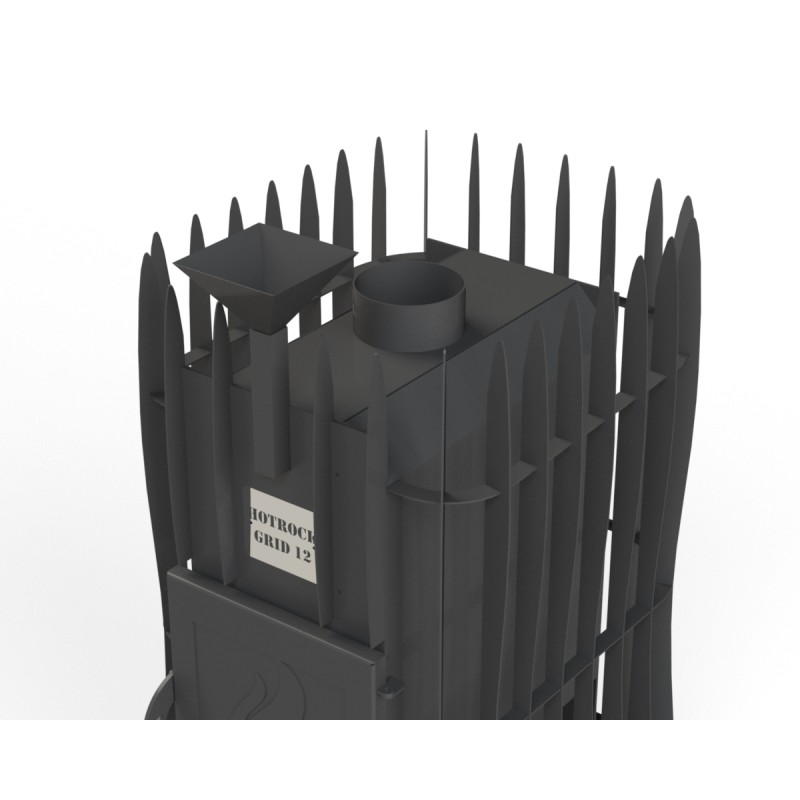 Pirts krāsns „Hotrockgrid12-SG-SN“ ar īsu kurtuvi ir paredzēta uzstādīšanai tieši tvaika telpā, kur malka tiek kurināta, neizejot no pirts. 150 kg akmeņu masa rada aptverošu siltumu, padarot krāsni ideāli piemērotu gan klasiskai mitrai pirtij, gan sausākam režīmam.