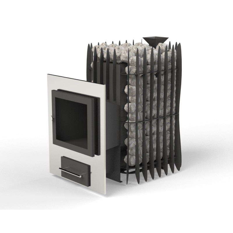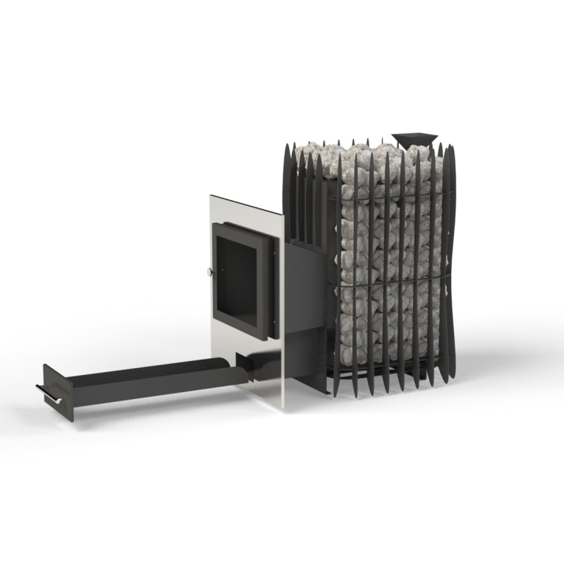 ✅ Maigs mikroklimats: 150 kg akmeņu pilnībā nosedz sakarsušo metālu, tāpēc gaiss pirtī nepārkarst un nepāržūst.