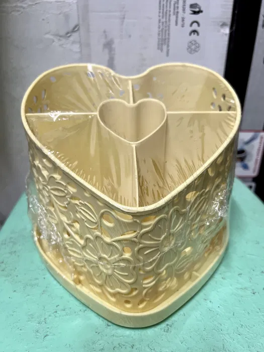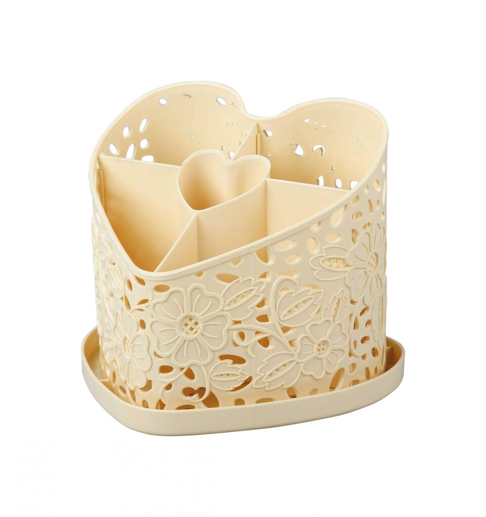 Šis burvīgais galda piederumu statīvs-žāvētājs ir ne tikai praktisks priekšmets, bet arī rota. Sirds forma un elegants ažūra ziedu raksts piešķir virtuvei romantiku un mājīgumu, bet funkcionalitāte palīdz uzturēt kārtību.