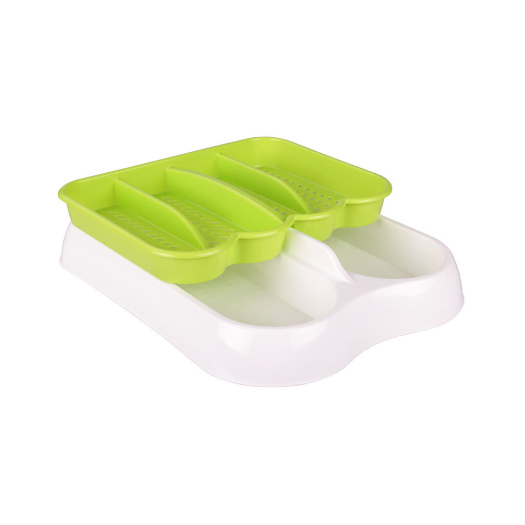 Šis plastmasas ieliktnis galda piederumiem ir vienkāršs, bet efektīvs veids, kā savaldīt haosu virtuves atvilktnēs. Vairs nekādas ilgstošas karotītes vai dakšiņas meklēšanas – viss būs savā vietā.