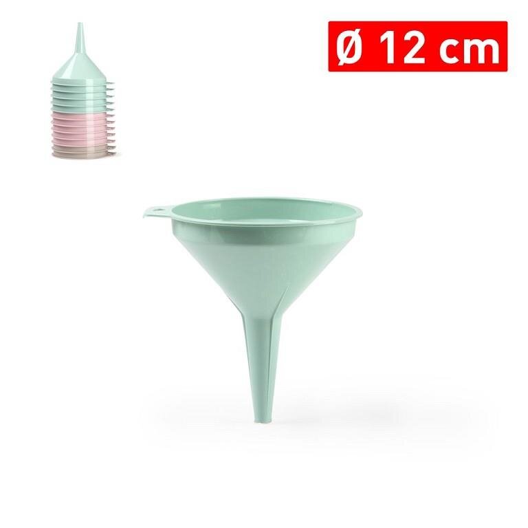 - Optimāls izmērs: 12 cm diametrs ir pietiekami plats ērtai liešanai, taču piltuve saglabājas kompakta un neaizņem daudz vietas.