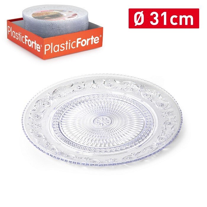 Šķīvis “KRISTĀLS” ir lielisks pierādījums tam, ka plastmasas trauki var izskatīties stilīgi un eleganti. Ražots Spānijā (“PlasticForte”), šis šķīvis imitē kristāla rakstus, taču tam piemīt visas plastmasas priekšrocības: tas ir viegls, neplīstošs un izturīgs.