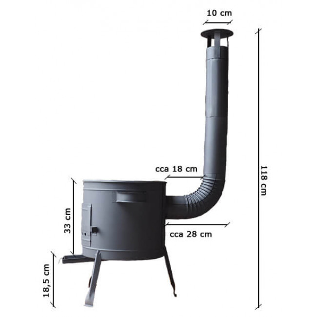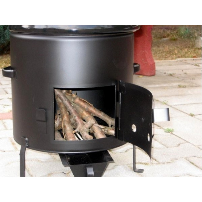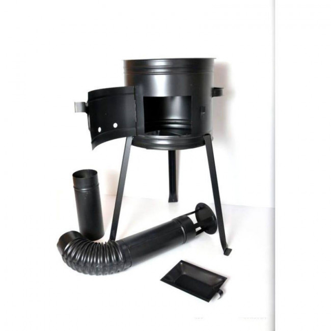 Plīts ir kempings, saliekams. Tas ir paredzēts drošai un ātrai gatavošanai katlā, dabā, jo iekšā deg uguns, un uguns un ogļu siltums apņem visu katlu. Prece ir metāla cilindrisks korpuss, kurā ietilpst noņemamas kājas, durvis, pelnu trauks, skurstenis ar cauruli. Produktam ir divi rokturi, kurus ir viegli pacelt. Pateicoties optimālajam sienas biezumam (1,2 mm), ir izslēgta izstrādājuma sienu deformācijas iespēja.