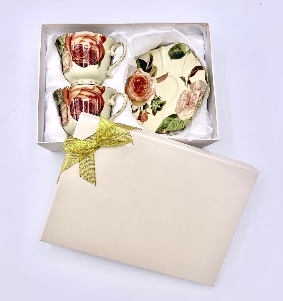 - Komplektācija: Komplekts paredzēts 2 personām, sastāv no divām krūzēm un divām apakštasītēm (4 daļas).