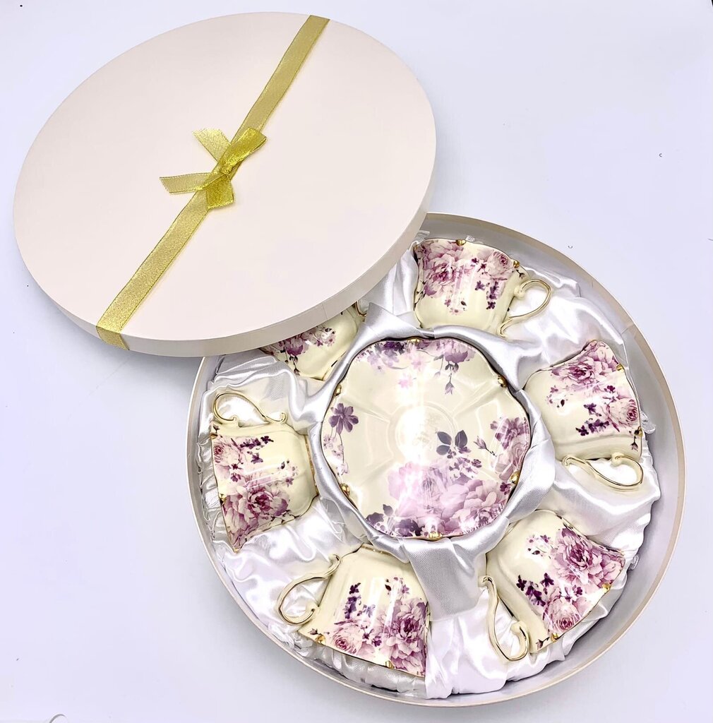 Šī lielā porcelāna kafijas/tējas servīze (24 daļas) ir paredzēta 12 personām, tāpēc tā ir ideāli piemērota lielām ģimenes svinībām vai viesu uzņemšanai. Elegants dizains, rotāts ar ziedu motīviem un pasteļtoņiem, piešķirs galdam izsmalcinātību.