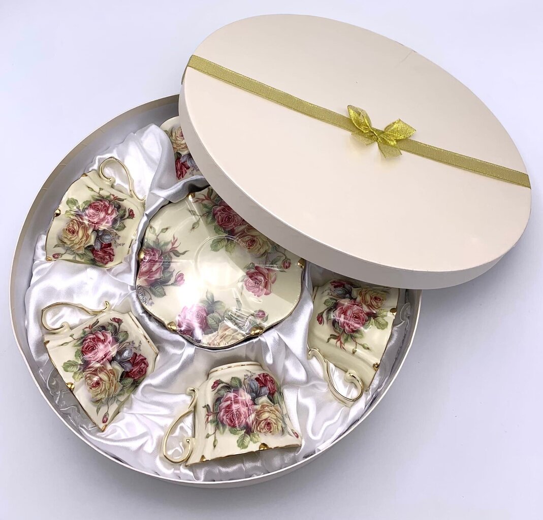Šī lielā porcelāna kafijas/tējas servīze (24 daļas) ir paredzēta 12 personām, tāpēc tā ir ideāli piemērota lielām ģimenes svinībām vai viesu uzņemšanai. Elegants dizains, rotāts ar ziedu motīviem un pasteļtoņiem, piešķirs galdam izsmalcinātību.