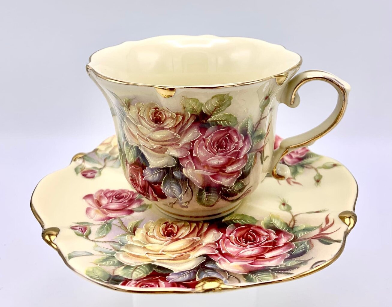 - Ieteicams mazgāt ar rokām, lai saglabātu ziedu dekorāciju un zeltījuma (ja tāds ir) spilgtumu.