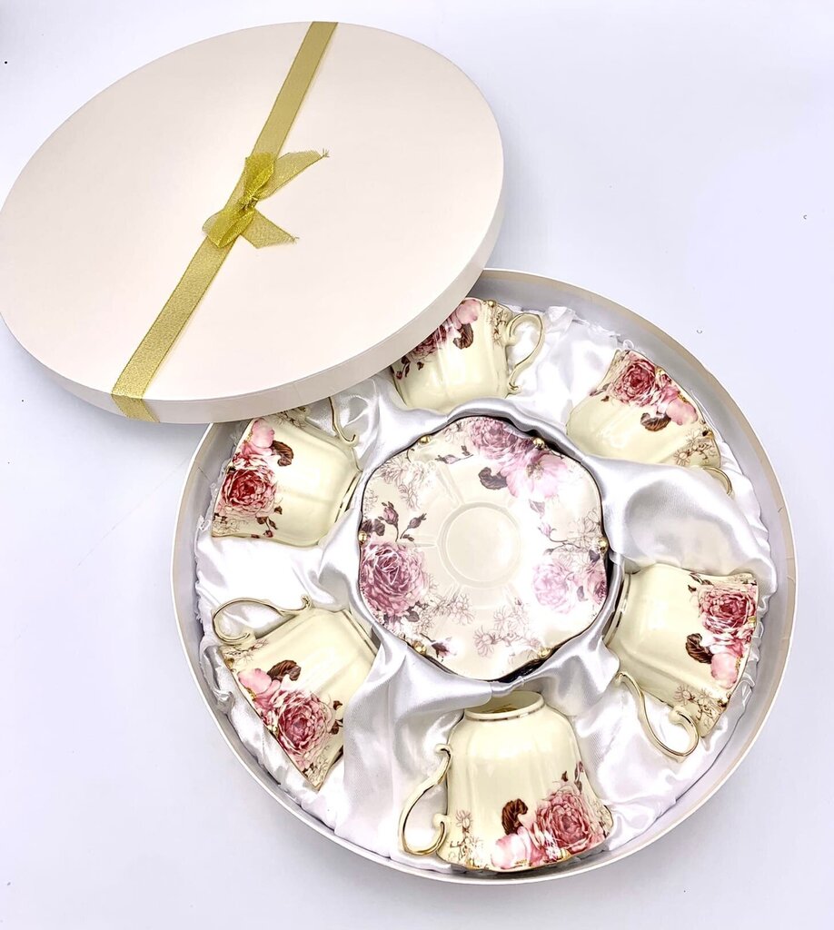 - Komplektācija: Komplektā ietilpst 12 krūzes un 12 apakštasītes.