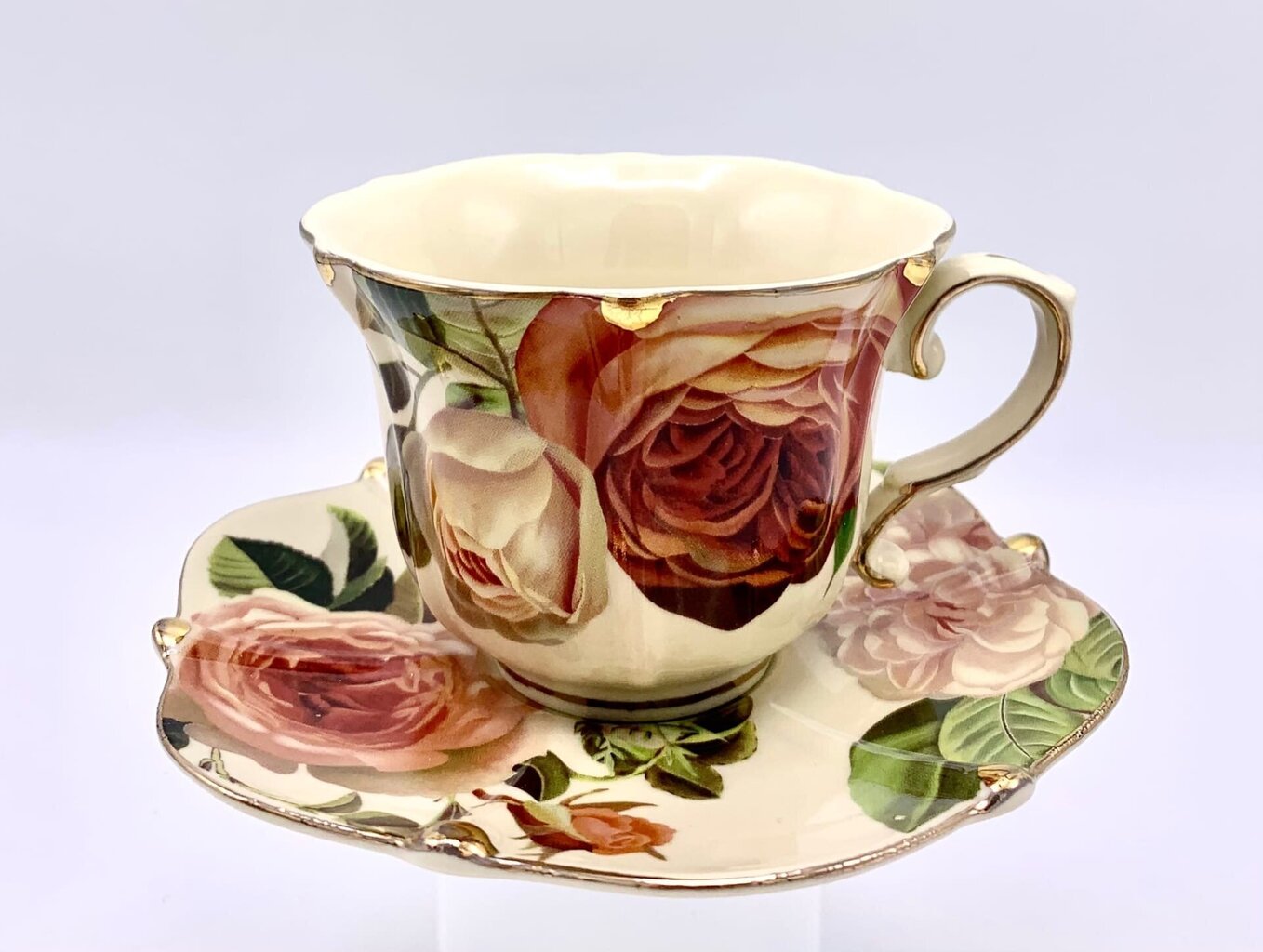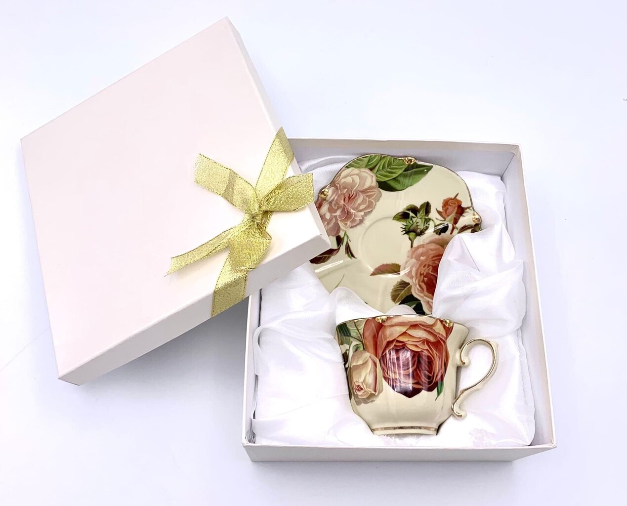 Šī porcelāna krūze ar apakštasīti ir radīta personīgiem mirkļiem – rīta kafijai vai pēcpusdienas tējai. Smalks porcelāns un elegants ziedu dekors piešķir traukam mājīgumu un greznības sajūtu.