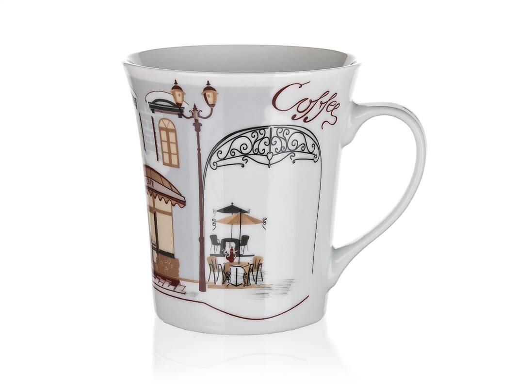 Šī “Banquet” porcelāna krūze izceļas ar savu eleganto, nedaudz uz augšu paplašināto formu, kas ne tikai izskatās skaisti, bet arī ļauj labāk atklāties kafijas aromātam. 340 ml tilpums ir ideāls cappuccino, latte kafijai vai lielai tējas tasei.