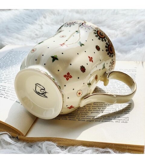 - Materiāls: Krūze izgatavota no augstākās kvalitātes krēmkrāsas (ecru) porcelāna, kas izskatās ļoti silti un mājīgi.