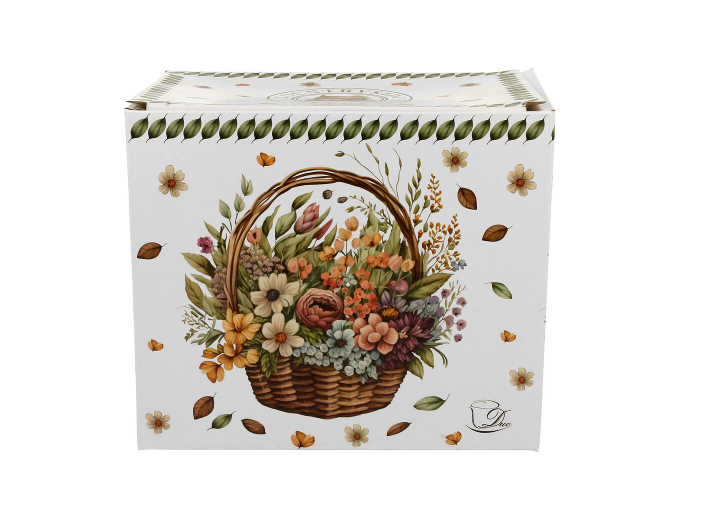 Krūze ir iepakota skaistā dekoratīvā kastē, kas atkārto to pašu motīvu. Tā ir gatava dāvanas ideja dabas mīļotājiem un estētikas cienītājiem.