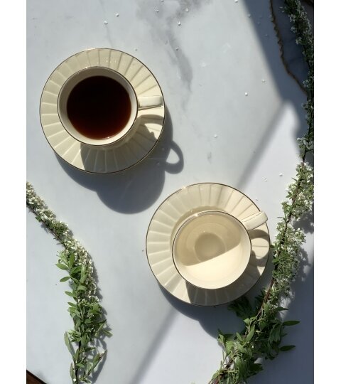 Divu krūzīšu un apakštasīšu komplekts “Nina” ir ekskluzīva zīmola “Duo” kolekcijas “Ecru” sastāvdaļa. Šis servīzes komplekts radīts tiem, kas novērtē nemirstīgu klasiku, greznību un mājīgumu savās mājās. Tā ir lieliska izvēle gan ikdienas tējas vai kafijas rituālam, gan īpašiem gadījumiem.