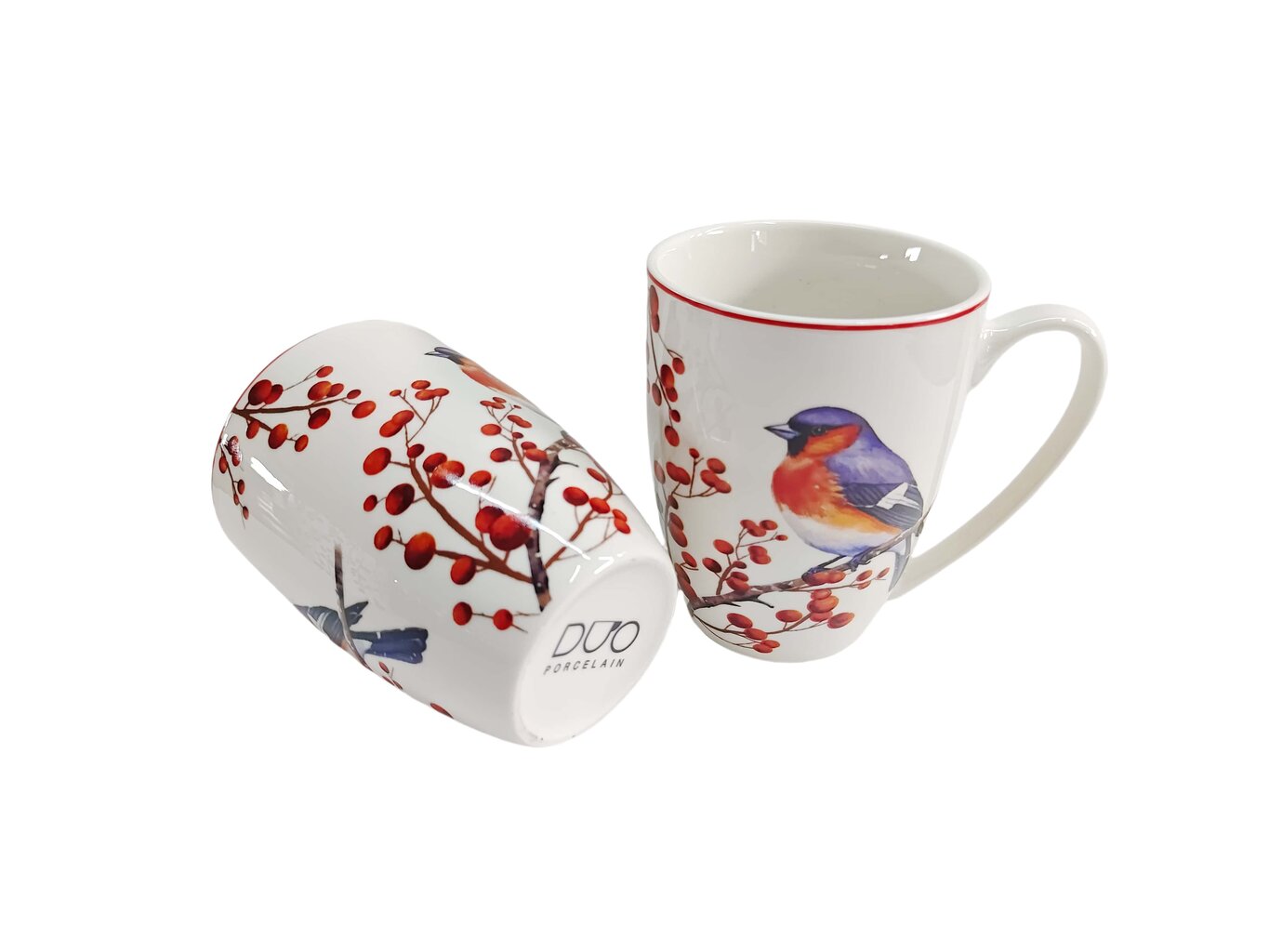 Divu krūžu komplekts no „Christmas Birds“ sērijas ienesīs jūsu mājās dzīvīgu un mājīgu svētku noskaņu. 360 ml krūzes, kas izgatavotas no augstas kvalitātes „New Bone China“ porcelāna, ir lieliska izvēle, lai baudītu karstus dzērienus aukstos ziemas rītos vai vakaros.