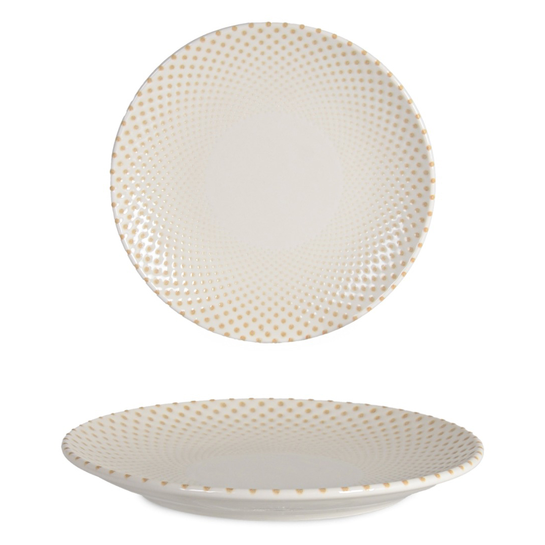 Tā ir gaiša, tuvu neitrāli baltai krāsai ar smalkiem dekoratīviem punktiņiem.