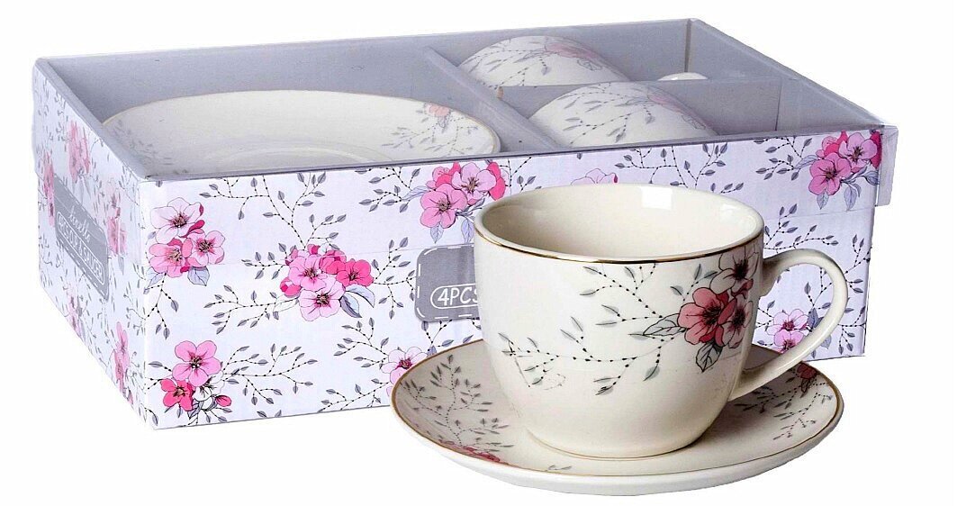 Šis tasīšu un apakštasīšu komplekts, kas rotāts ar smalku ziedu rakstu un pasteļtoņiem, piešķirs jūsu galdam īpašu šarmu un eleganci. Izgatavots no augstas kvalitātes porcelāna, tas ir lieliski piemērots gan ikdienas rituāliem, gan īpašiem mirkļiem.