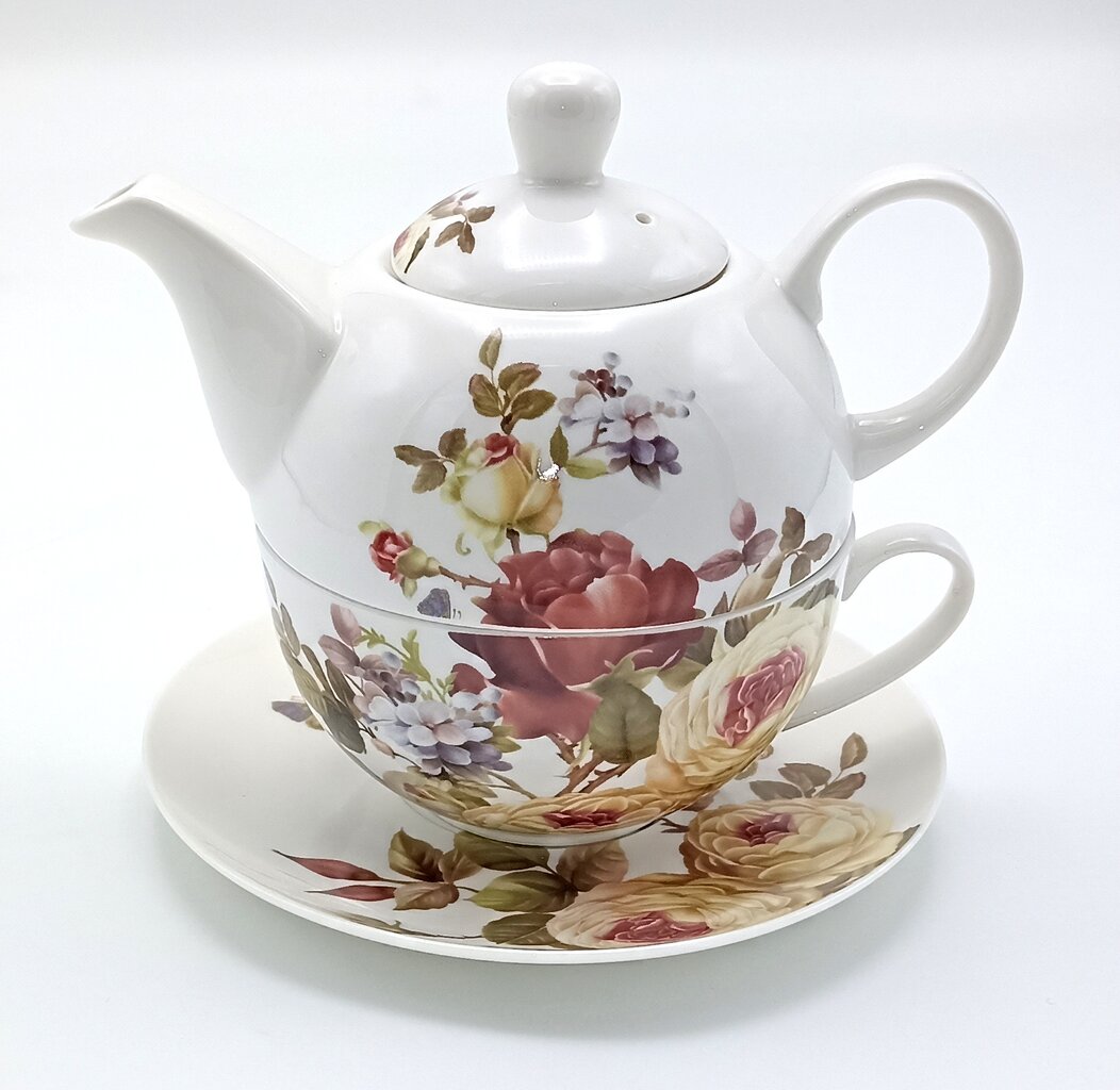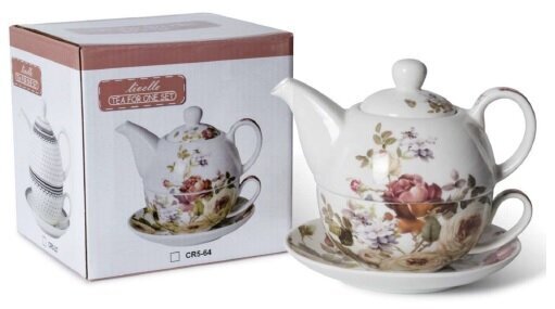 Šis elegantiškas „Tea for One“ (arbata vienam) porcelianinis rinkinys yra sukurtas jaukiam ir stilingam laiko praleidimui. Rinkinį sudaro arbatinukas ir puodelis, kurie idealiai dera tarpusavyje, suformuodami kompaktišką ir estetišką bokštelį.